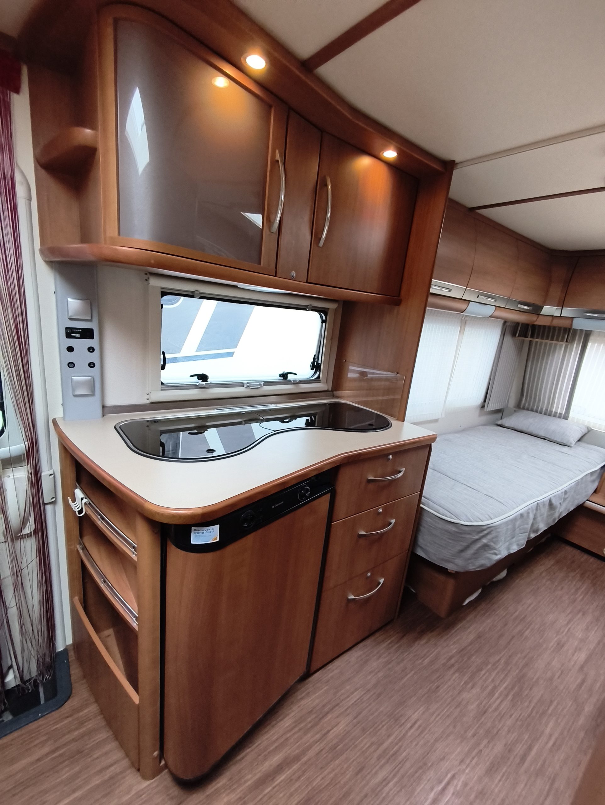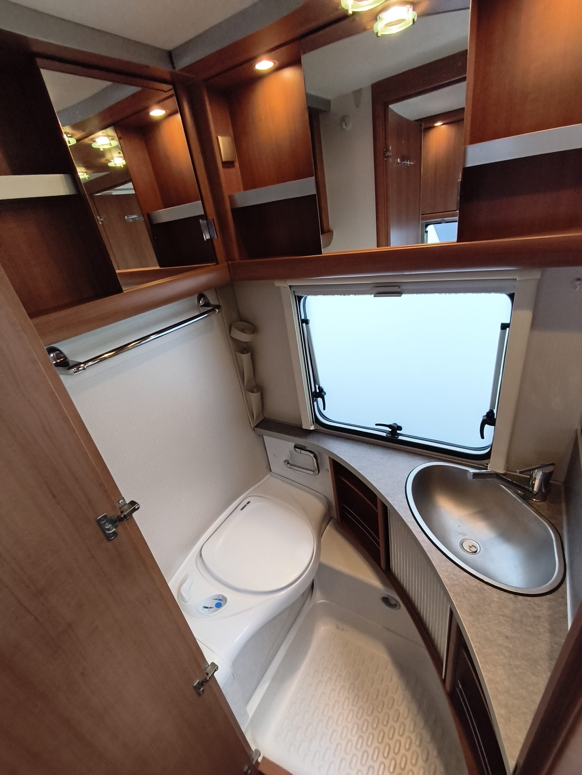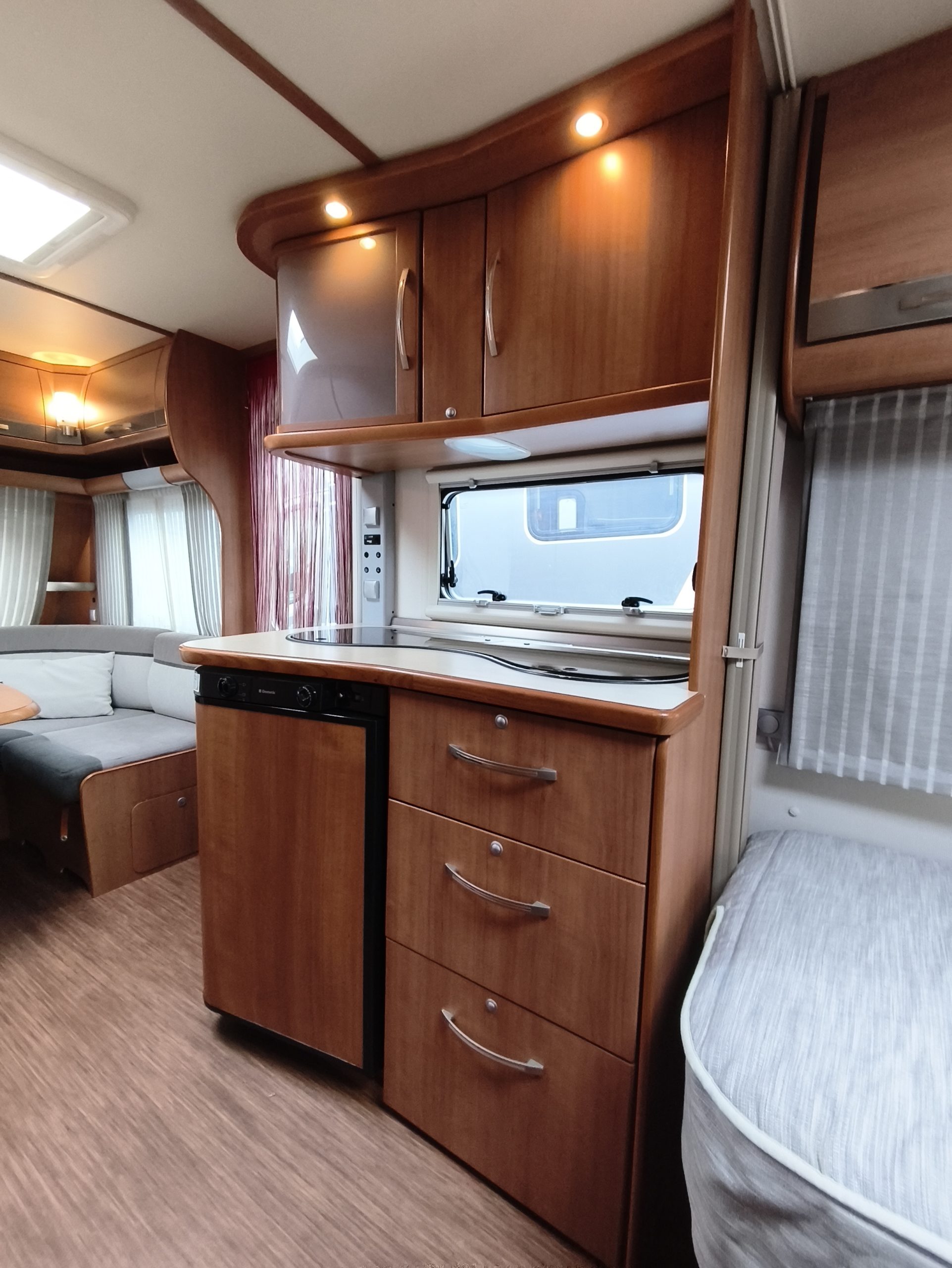 Einzelbetten im Heckbereich und Rundsitzgruppe im Bug (kann zu einem Bett umgebaut werden), alle Fenster ausstellbar mit Fliegengitter und Verdunkelungsrollo