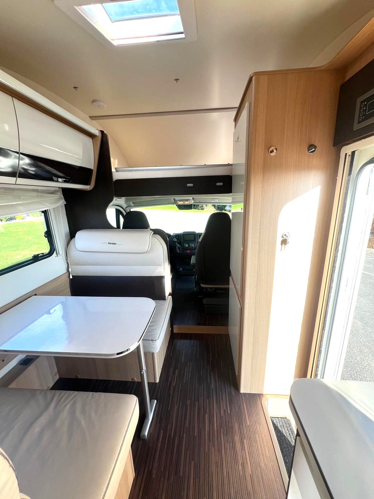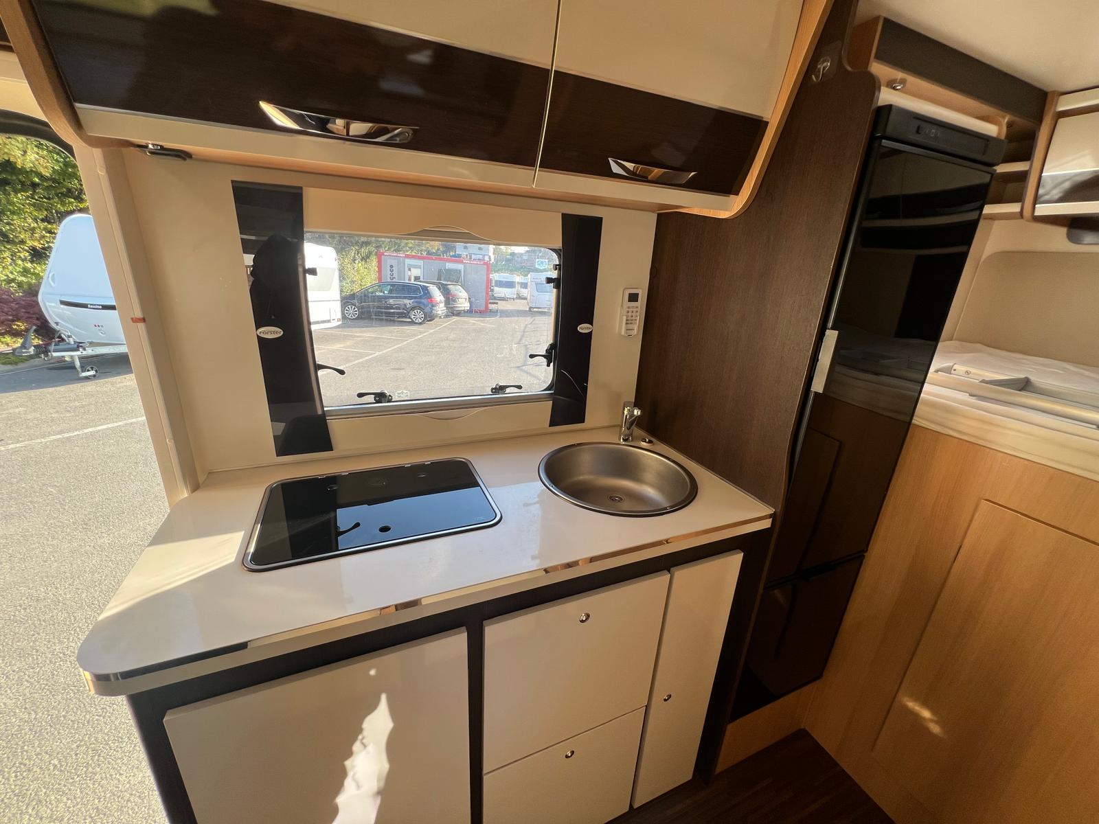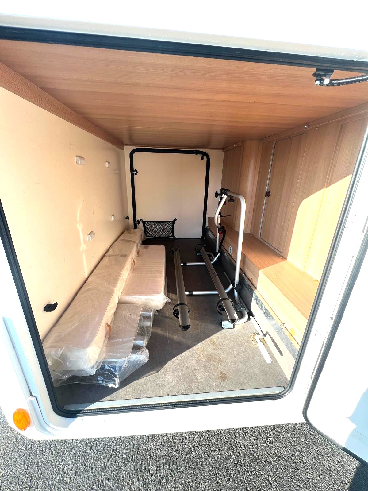 Querbett im Heck und ein weiteres Querbett im Alkoven, Seitensitzgruppe mittig ( kann zu einem Bett umgebaut werden ) alle Fenster ausstellbar mit Fliegengitter und Verdunkelungsrollo, Klima im Fahrerhaus, Fahrerhaussitze mit Armlehnen