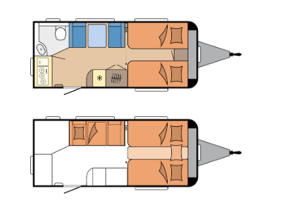 Einzelbetten mit Rollbettfunktion im Bug, Mittelsitzgruppe (kann zu einem Bett umgebaut werden), alle Fenster ausstellbar mit Fliegengitter und Verdunkelungsrollo, Antischlingerkupplung, Frischwassertank 25l