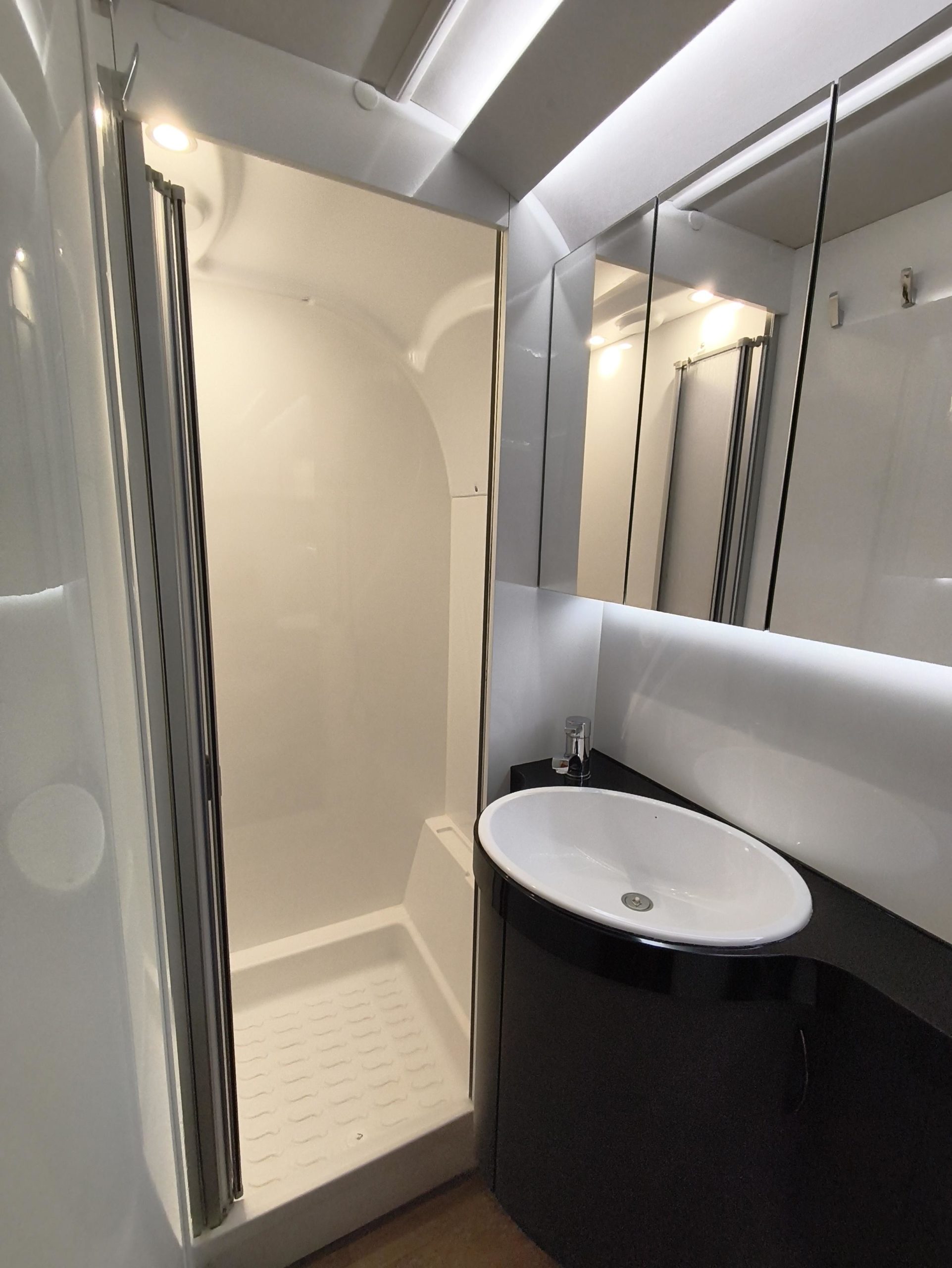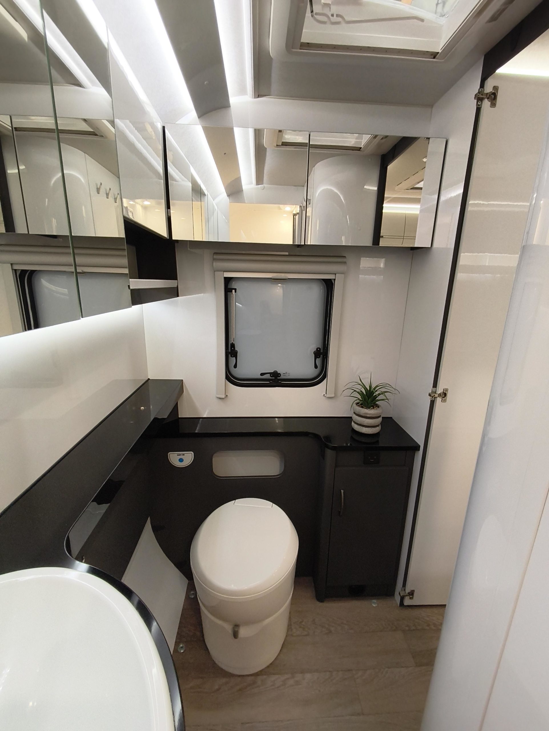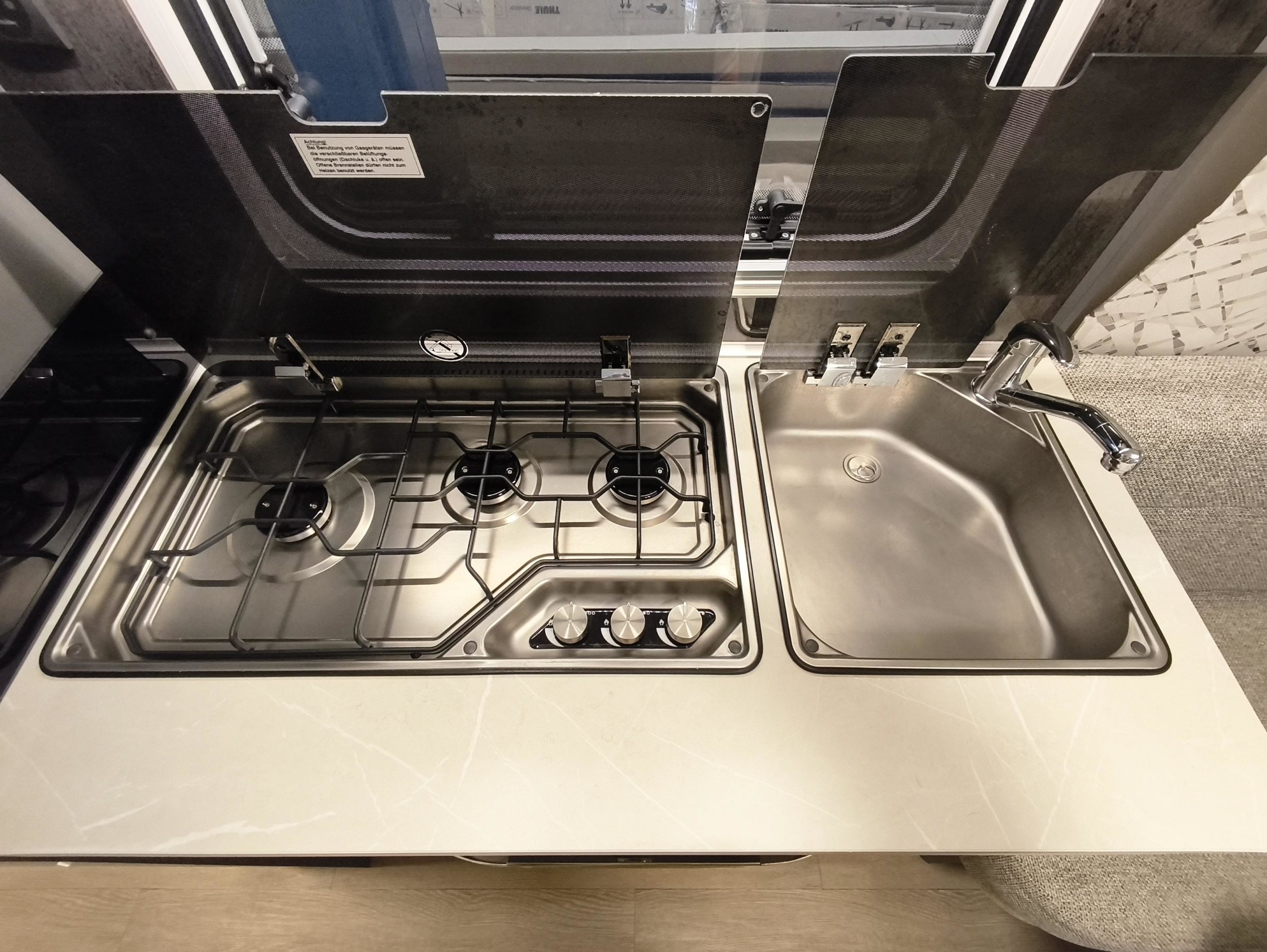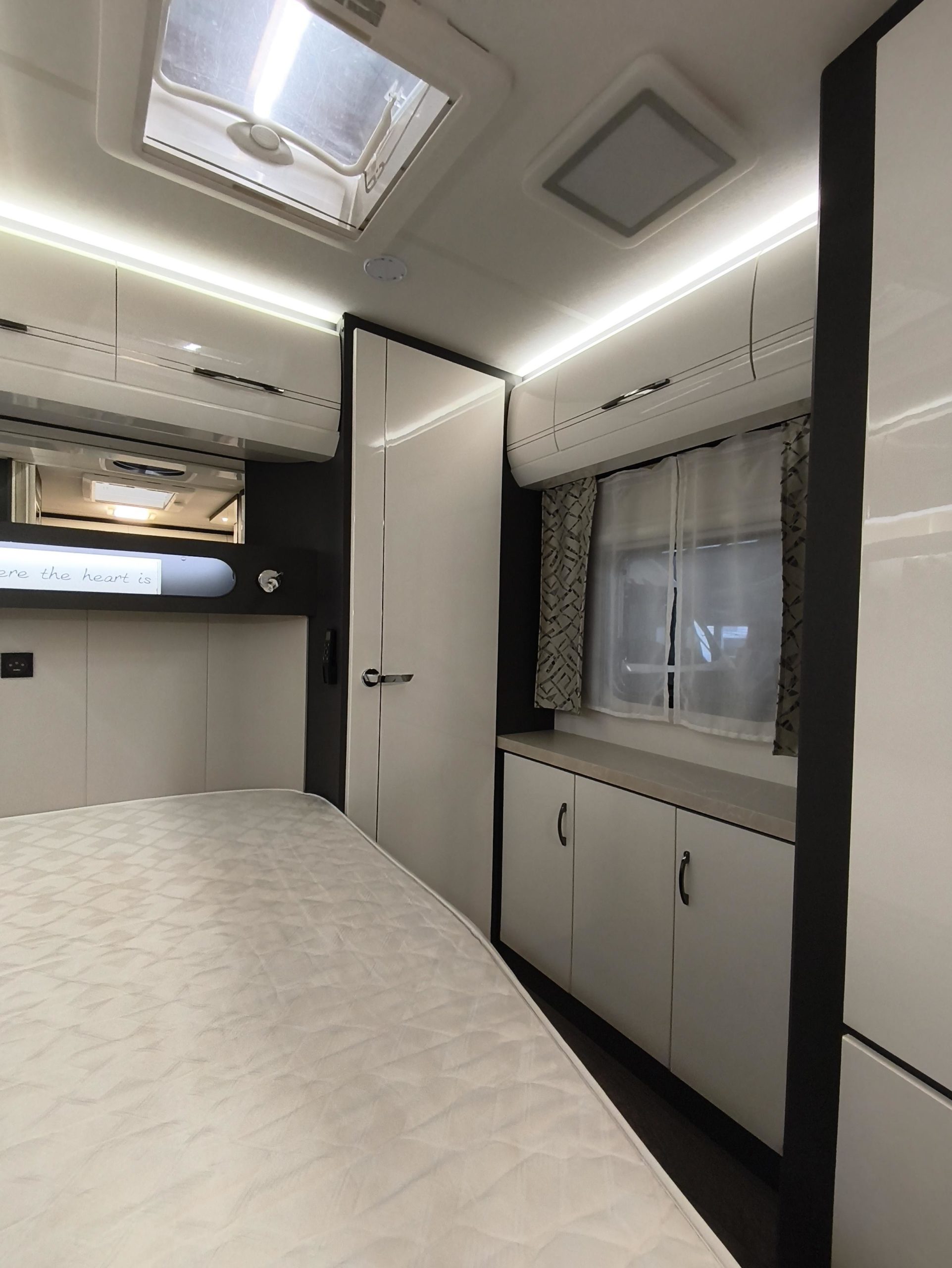 Französisches Bett, Seitensitzgruppe (kann zu einem Bett umgebaut werden), alle Fenster ausstellbar mit Fliegengitter und Verdunkelungsrollo, Antischlingerkupplung